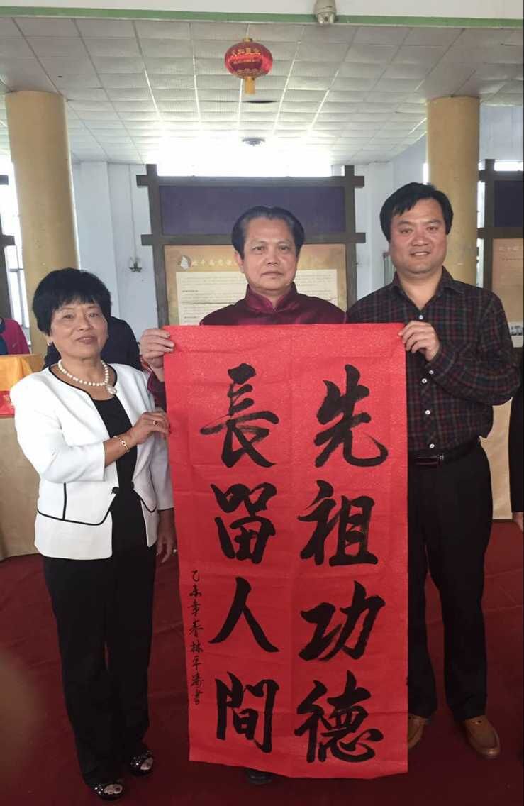 在高興之余,比干廟負責人懇請林董事長留下墨寶,林董事長揮毫潑墨,寫下:“先祖功德,長留人間”八個大字,現場響起熱烈的掌聲!